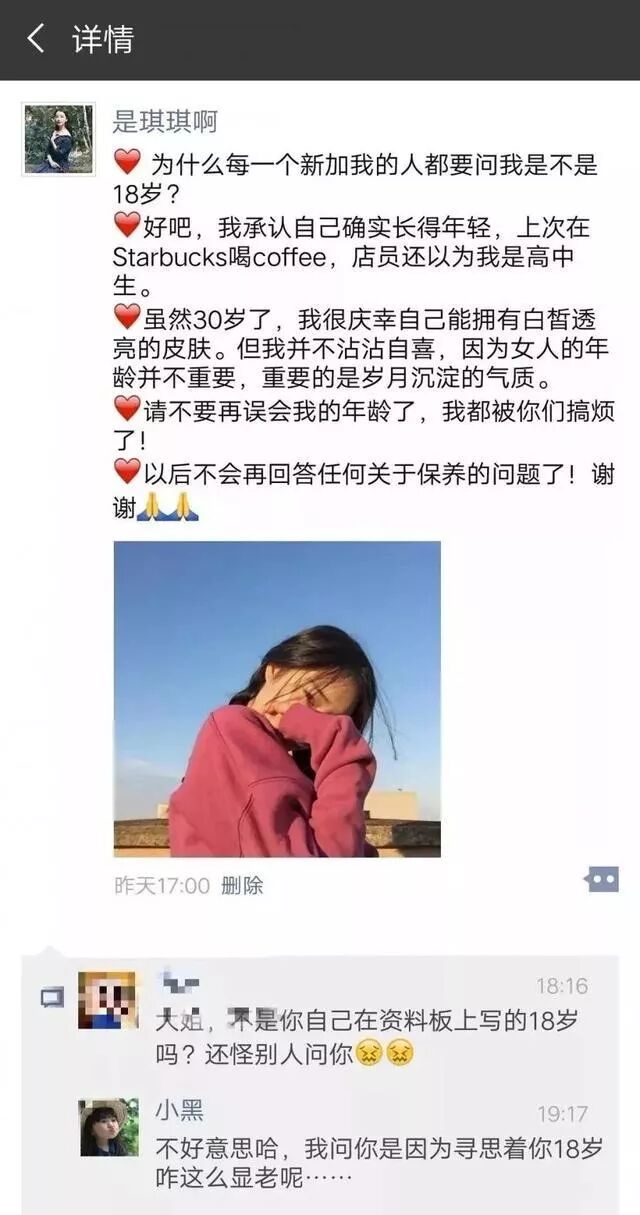@天真少女:说我朋友圈的一个人,天天在ins上盗图,然后发到自己朋友圈假装是自己的生活,前几天还盗图发了一个在香港才有的点心代表,问题是她根本也没去,估计就是觉得可以装逼直接盗过来了吧,然后还有盗那种护肤品的图片,结果ipsa盖上的倒影我放大一看根本就不是她本人!