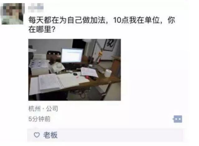 高中毕业后我俩基本一个月联系一次,她告诉她进了一家很无趣的公司,每天基本就是打打字,喝喝茶,同事都在聊股票和买啥纸尿裤好,如果18点后还没下班,大家会组团在朋友圈晒图:“加班很辛苦”。