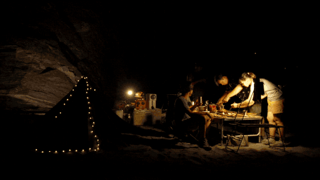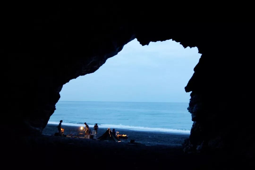 在海边要看地形,还有潮汐,涨潮就不能来,像海蚀洞我们在洞口烤,算有点遮蔽,就算下了雨也不怕,我们不会往太里面去,里面有蝙蝠。