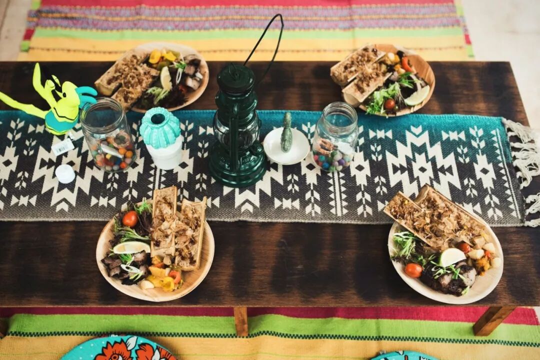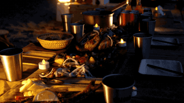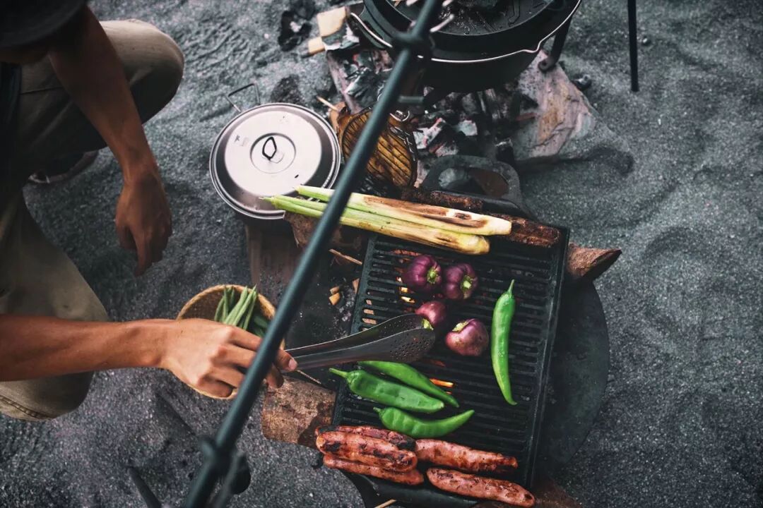 去之前就要把所有食材准备好,肉也要先腌过,蔬菜的话我会亲自去菜园拔,大概一上午就在忙这个事。接下来要根据我们去的地方、人数、要做的料理来挑装备,有一些铁锅、铁架、烤网、平底锅等等,有时会带个小盆栽,然后桌巾、桌椅、蜡烛这些。