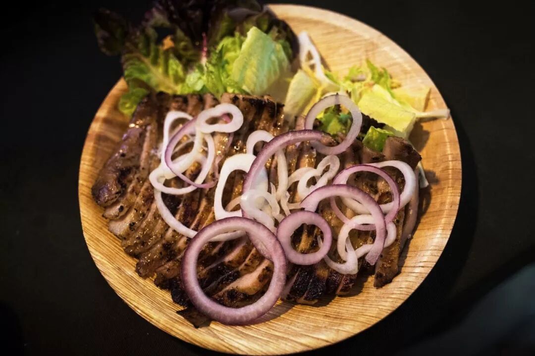 料理时用包锡箔纸包着腌好的厚切五花肉,放在锅内把肉闷熟,接着以烧烤的方式,把表皮烤香或煎香即可食用。