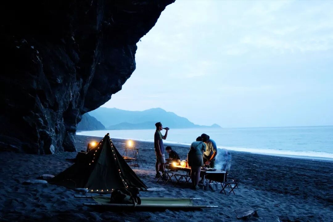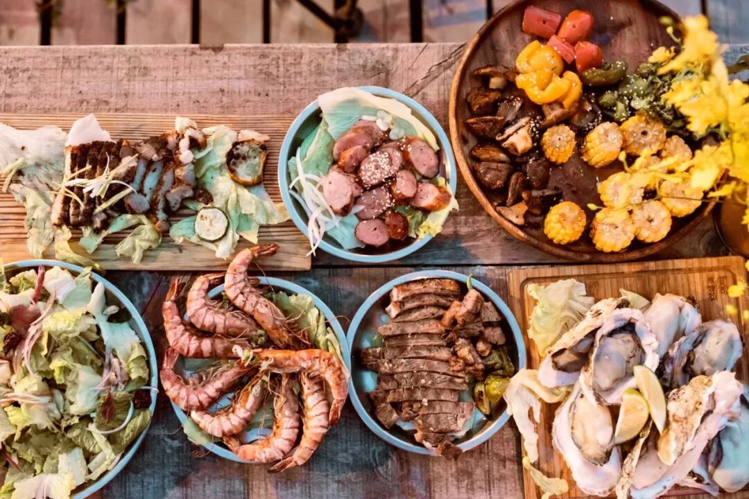 边烤肉边享受风景,玩一下水,一两个小时后就可以吃饭了。铺上喜欢的桌巾、摆一点小植栽、点上蜡烛,或是用LED灯照明,放着音乐,看着蓝天、大海、傍晚的夕阳,我真的很喜欢这里,到晚上没有光害,还能看到满天星斗,非常享受。