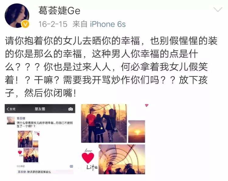 2016年的情人节,章子怡晒出了跟小苹果的幸福照,更是引起了葛荟婕的强烈不满,连发数条微博呛声。