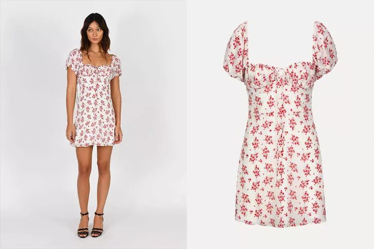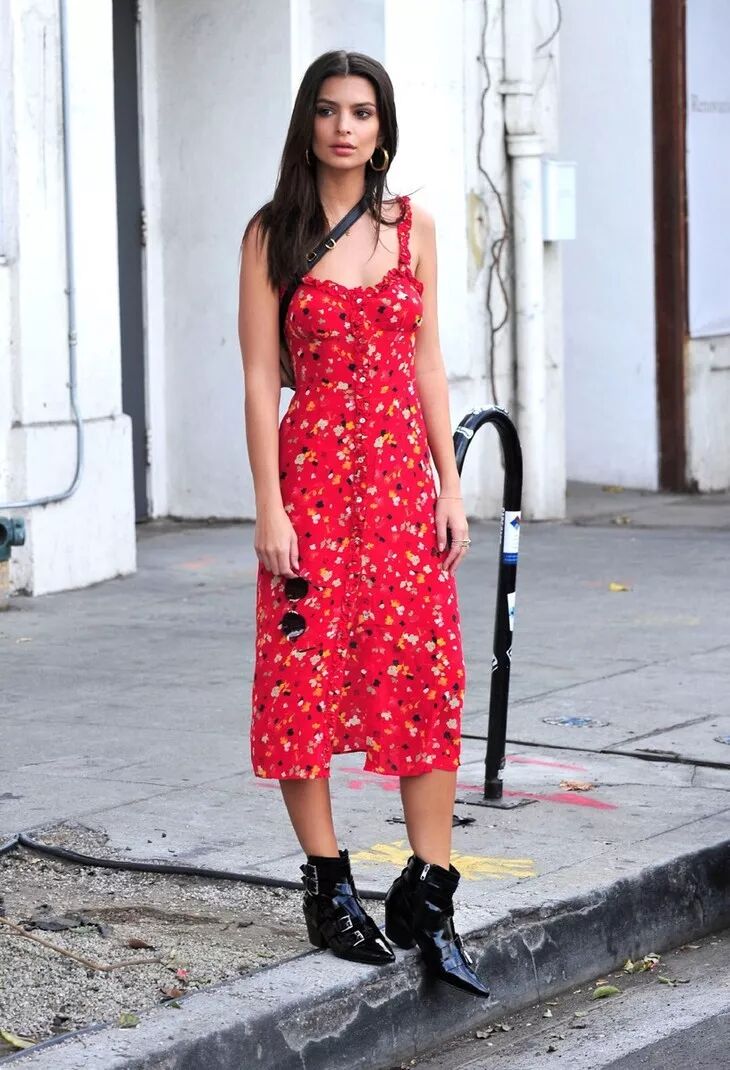 不过有没有发现,Emma Roberts选择的这两身连衣裙,除了碎花以外,还有一个相同点:裹胸设计。紧紧包裹上身的裙型,上紧下松在视觉上形成一个A字,让整个人看起来更加轻盈活泼,也是为什么满满女人味的裙子Emma穿出了活力的少女感。