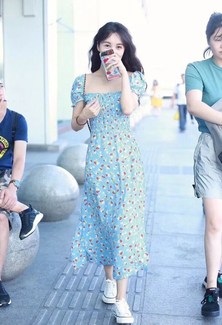 李菲儿就是裹胸裙“爱好者”,她尤其偏爱碎花的款式,近期两度穿着碎花裹胸裙亮相机场。这条淡雅的天蓝色裹胸长裙不仅把她的肤色衬得更加白皙,而且减龄效果更是满分 。