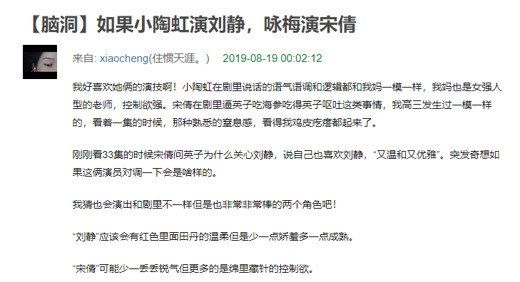 - 好演员真的是宝藏,我们以前因为陶虹当了《演员的诞生》的飞行导师写过她出色的业务水平。前段时间又因为陶虹在《小欢喜》里教科书级别的表演再次膜拜。 我给从没看过这部剧任何镜头的队友看了宋倩和英子吵架那段