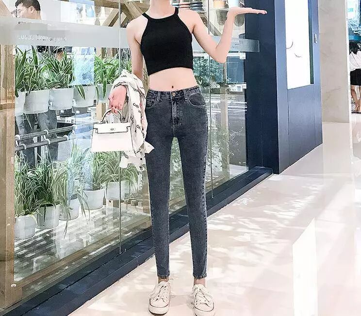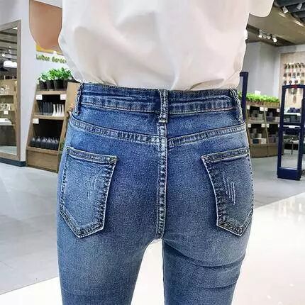 然后来一条可以和上面衬衫配一套的九分牛仔裤。