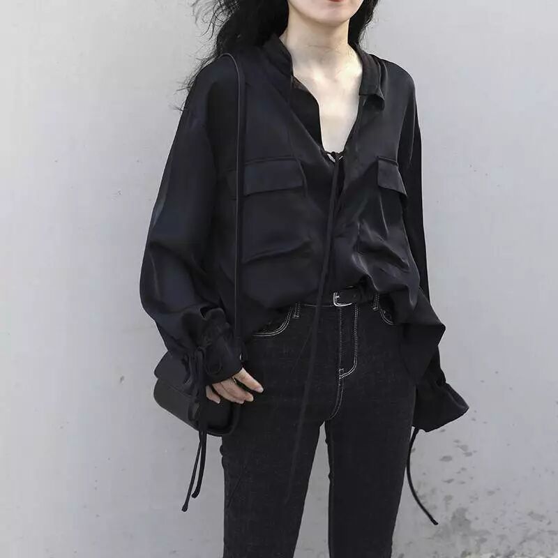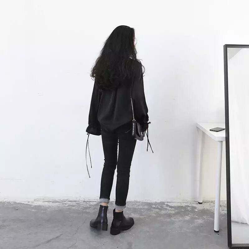 整件衬衫就很滑,垂坠感很棒,再加上黑色,那小身板,显瘦的不行!