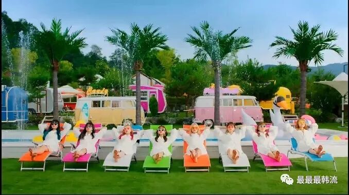 场景一转换,就是八位妹妹坐在沙滩椅上晒日光