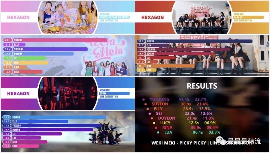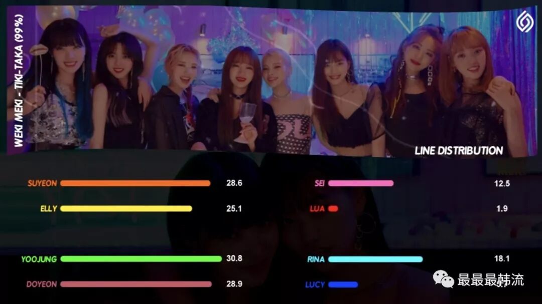 从粉丝做的成员歌词分配可以看出,Rina、Lucy和Lua的part一直都比其他成员少很多,但也在正常范围内