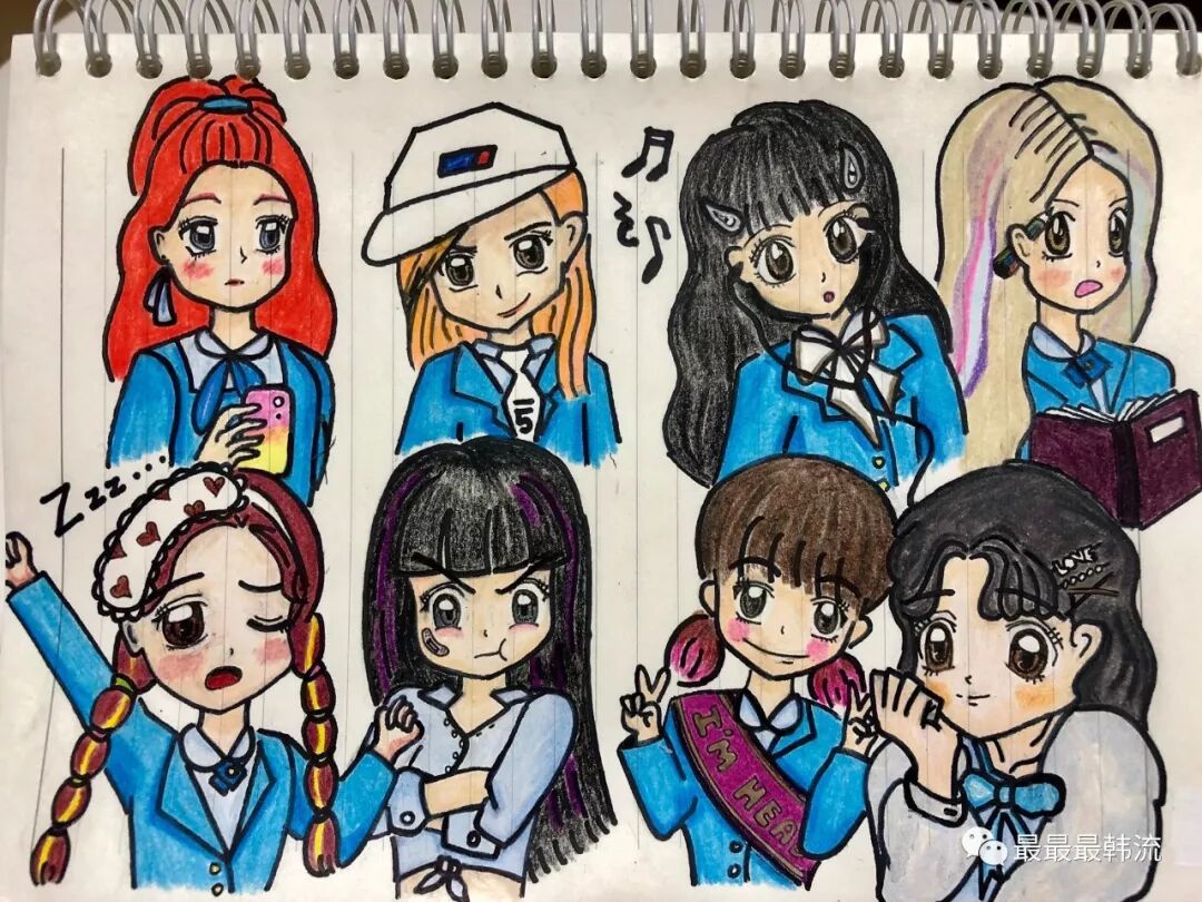 这张出自她手的Weki Meki全员图,画风超可爱!神态跟成员们真人也很像