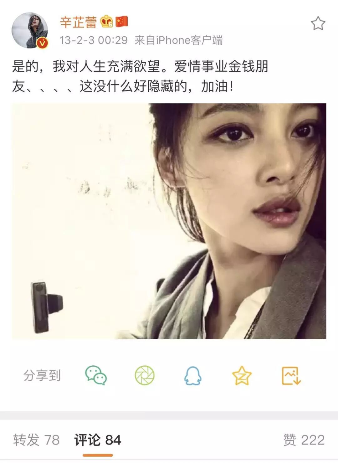 早在2013年,辛芷蕾在没多少人关注的微博里也表达过自己的「野心」。