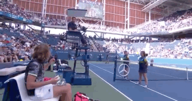 这场4盘比赛拼了将近4个小时,比赛强度和抽球的烈性令人叹为观止。西西帕斯拼到抽筋,在放慢节奏找寻调整机会的过程中,受到主裁的警告和罚分。万分沮丧之下的西西帕斯和主裁激烈争吵,并且开了“你们法国人都是怪胎”的地图炮。
