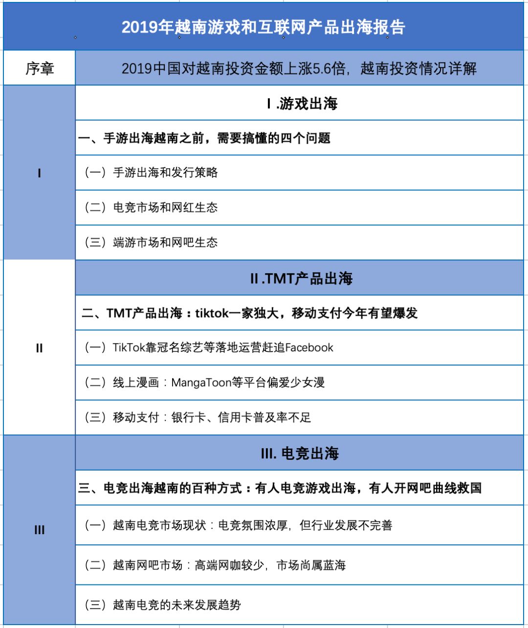 - 作者/邓颖翀 2019越南游戏和互联网产品出海报告:越南会是下一个中国吗? 序章、Ⅰ.游戏出海点击链接回顾 Ⅱ.TMT产品出海点击链接回顾 III.电竞出海点击链接回顾 Ⅳ.影视综和直播 打