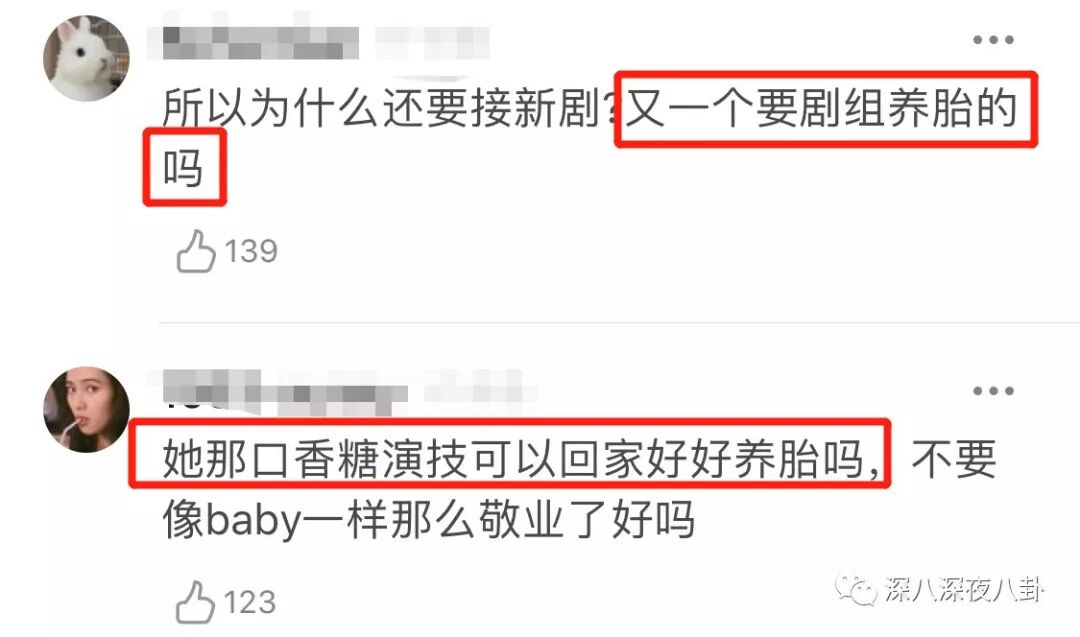 虽然小赵怀孕时各种劈叉骚操作,但她至少在怀孕期间暂停拍戏,既尊重自己的身体,也尊重别人的劳动,还算可以了,