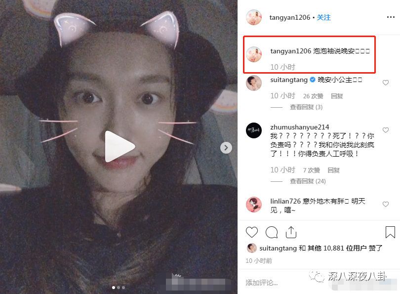 7月中,唐嫣在ins晒视频跟粉丝说晚安,只露了上半身和背影,