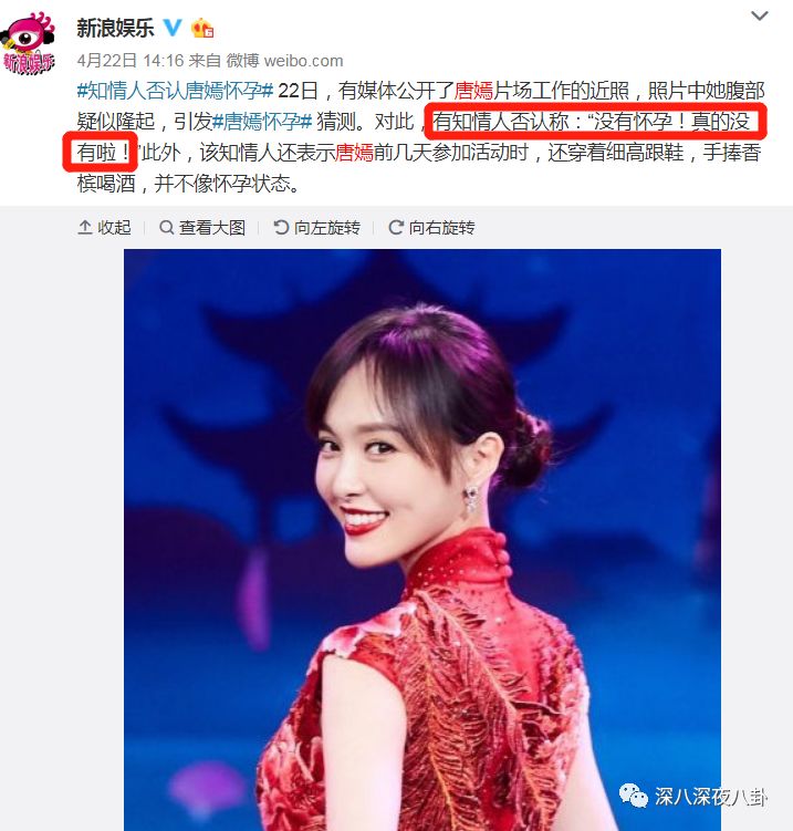 但很快就有知情人士出来否认,坚称唐嫣绝对没有怀孕,表示前两天她参加活动,还穿了细高跟鞋、手捧着香槟喝酒。