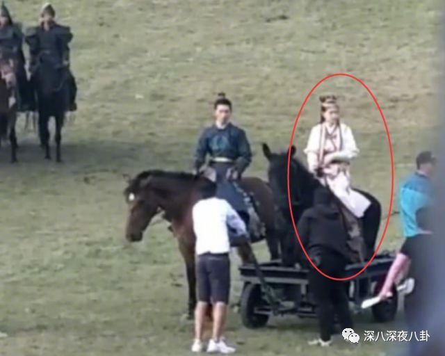 骑马戏窦骁骑真马,她骑大家用小轮车拉动的假马,