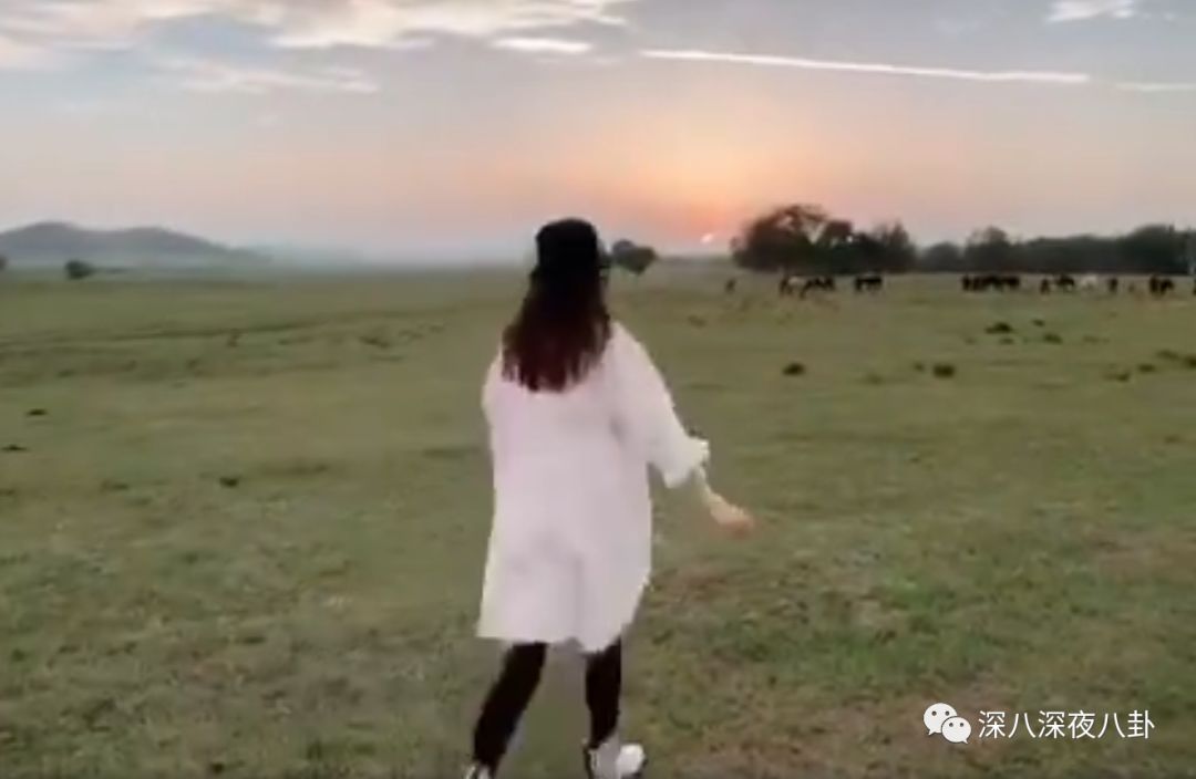上个月底唐嫣放了段自己在剧组草原上的视频,依旧特别注意只露上半身和背影,