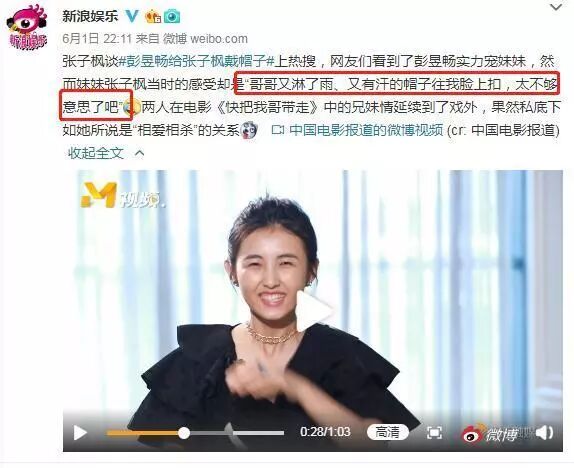 8月27日是张子枫18岁的生日,零点刚过,哥哥彭昱畅就在微博发文为妹妹庆生:“生日快乐妹妹,时间将近,该给哥准备生日礼物了。”还配上了电影《快把我哥带走》的主题曲。