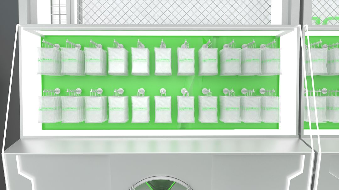 在入口的拍照机先拍一张照片,系统会帮你自动生成像素化头像,工牌打印出来之后,记得把一张贴到你的门卡上,另一张插入反应袋。