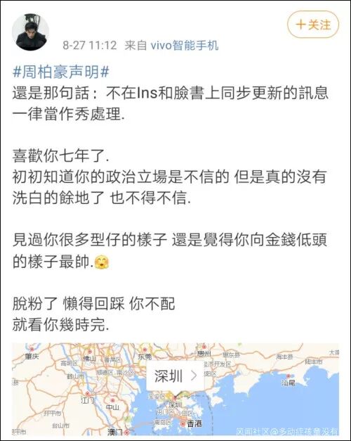 对于周柏豪的这一纸声明,不少网友都认为他这是“微博特供爱国”,想要展现基本的诚意,最起码要把这份声明也同步到境外社交平台上。