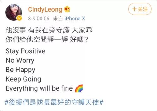 而周柏豪的经纪人在微博上则解释称:“他没事,有我在旁守护,大家乖,你们给他空间静一静,好吗?……”
