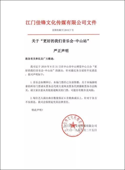 在8月25日时,主办方还曾经因为票务风波而发过声明,希望歌迷能够从正规渠道购票、自理风险。