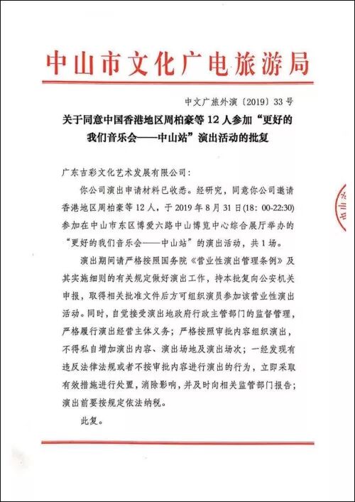 主管部门已经核准此次演出,但是强调:“一经发现有违反法律法规或者不按审批内容进行演出的行为,立即采取有效措施进行处置,消除影响,并及时向相关监管部门报告……”