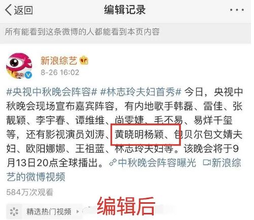 关于AB和黄晓明的事儿相信小婊贝们都很想尽快蹲一个大结局吧,这点瓜爷也有相同的想法,毕竟自从追了HK的GD大戏后,被又臭又长的故事已经拖到骂都嫌浪费时间。现在从他俩是否存在威逼这点上看还为时过早,这对只有闹到撕破脸看谁占上风才能做最后判断(成功走到终点的才算赢家...),不过对上面提到的曝光离婚的事儿,瓜爷倒是能提醒小婊贝们注意一个点。昨儿新浪发了关于央视中秋晚会的明星阵容,其中提到了三对夫妇的名字,大家请自行在上下图中玩文字找茬游戏,一个是下午三点半编辑的,另一个是半小时后新浪重新编辑的。这内容里面到底改动了哪里,聪明的小婊贝记得在下方留言哦~