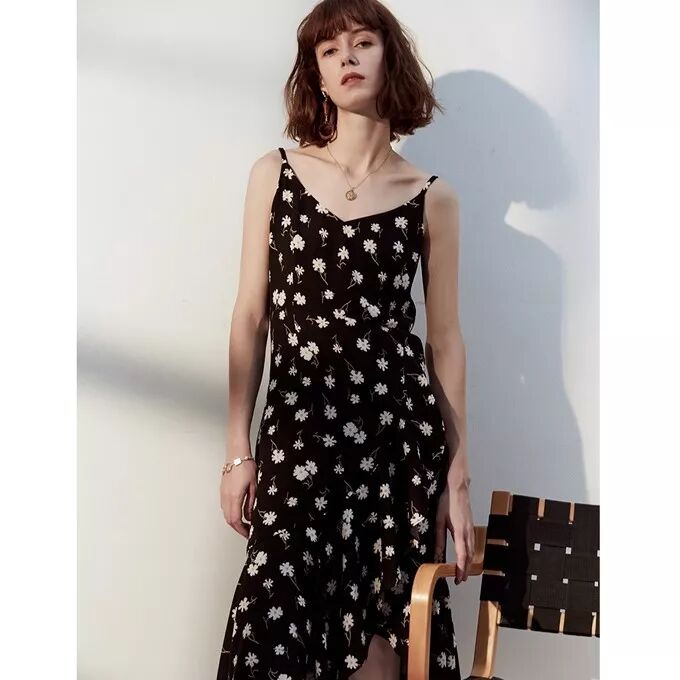 3、黑白碎花吊带裙。可以外面套针织开衫、西装什么的。还可以内搭修身的T恤、高领针织衫。可以说能通穿四季。静电可以喷去静电喷雾。