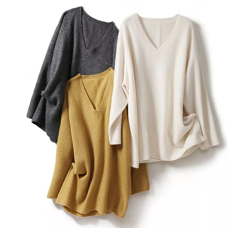 1、 高端真丝羊绒,廓形感毛衣。V领露锁骨,也可以叠穿衬衫、修身的高领什么的。