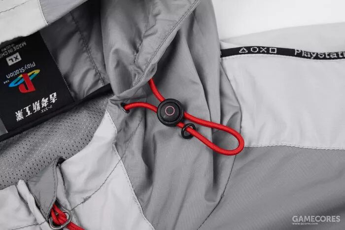 这款轻薄外套有着许多小细节,调节扣上的三角、圆圈、叉子、方块的小 logo 一定能让那些曾经有 PS 主机陪伴的朋友会心一笑。