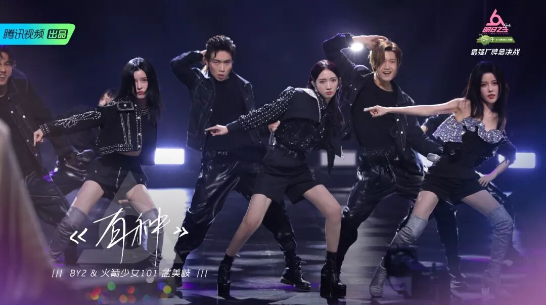 孟美岐助阵BY2,三位唱跳实力俱佳,动作干净利落,不拖泥带水,合作演绎《有种》充分说明了好的唱跳就是不停练习的结果。