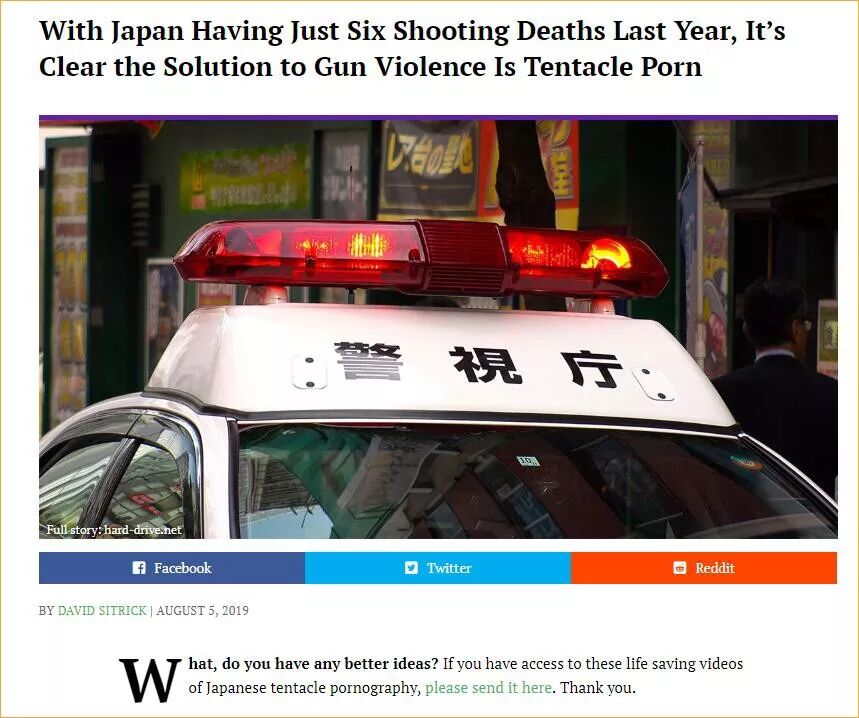 他们关注到去年日本只有六起枪击事件,那么很明显了,解决枪支暴力的办法就是日本独有的触手play小电影。