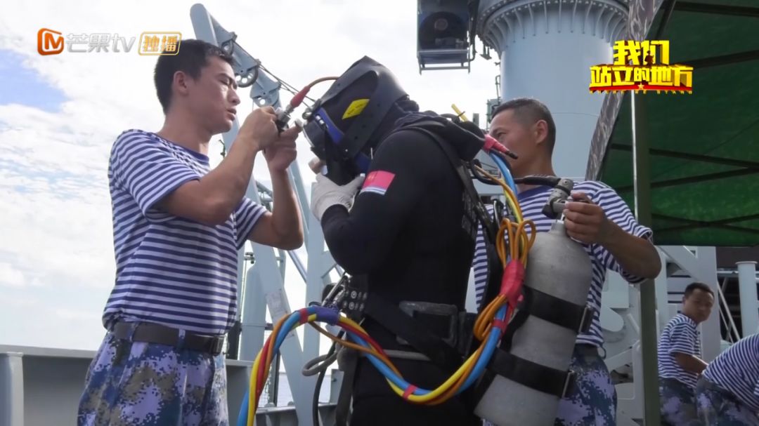 中国南海某水域,李刚身着潜水服,准备潜水器材,整队准备下水。