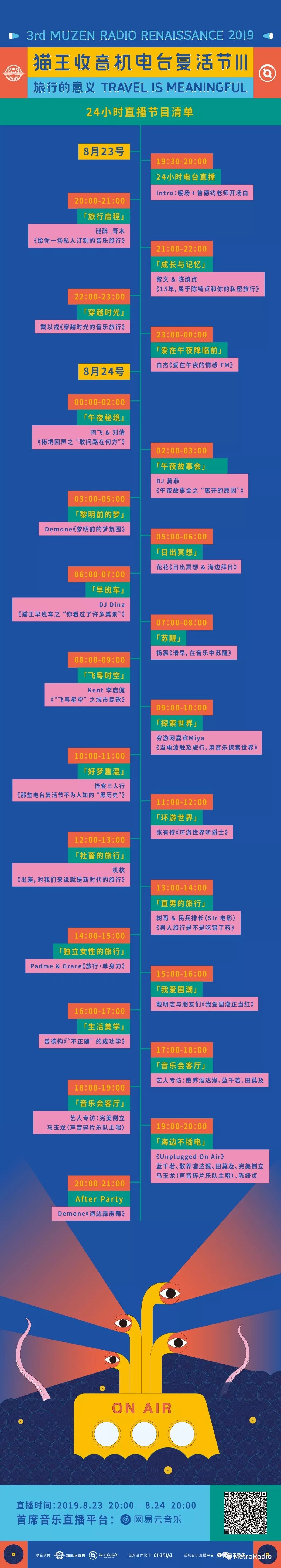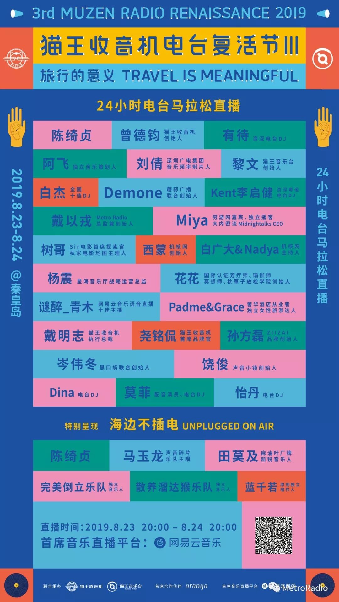 - 2019.08.23 - 24 秦皇岛 × 阿那亚 猫王收音机 第三届电台复活节 一天。24小时。1440分钟。86400秒。 时间没有记忆。除非开启冒险,制造惊喜,创造不凡。 才能在时间的数字