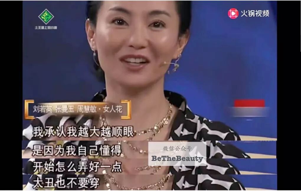 刘晓庆花团锦簇式穿衣法,确实带点泥土芬芳。而巩皇虽然穿着简单不落伍,但被旁边的邱淑贞和张敏衬得好朴素,一看气质就不同: