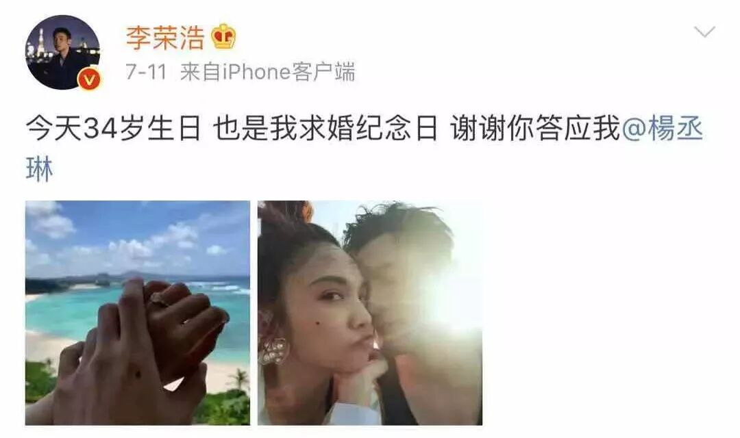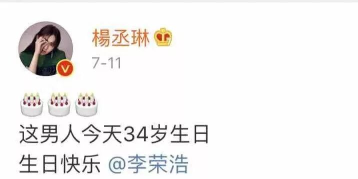 - 女神汇推送 来源:钱某某 ID:qianmoumou2018 2019年7月11日0点整,杨丞琳发布微博,这个男人今天34岁生日。 为男友李荣浩送上生日祝福。 接着,继张若昀唐艺昕,娱乐圈又传喜讯