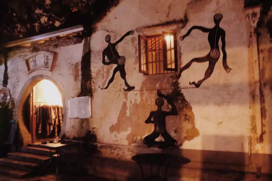 这有点像个属于竹林七贤的世外桃源:背靠着能俯瞰几乎整个义乌的大水库,你得穿过草木丛生的山路才能找到。酒吧前头的玻璃房子卖酒,也供你谈天说地杀死时间;后头的老水泥房子是演出空间,有月亮门、发黄的墙和与绝不属于西方文明的壁画,场地里还有个乒乓球桌