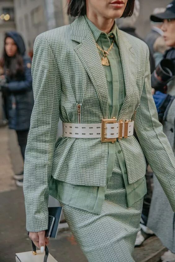 垫肩和阔肩的设计是今年最突出的一点,也成功吸引了时尚精们,吸睛指数upupup!