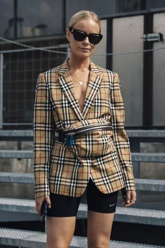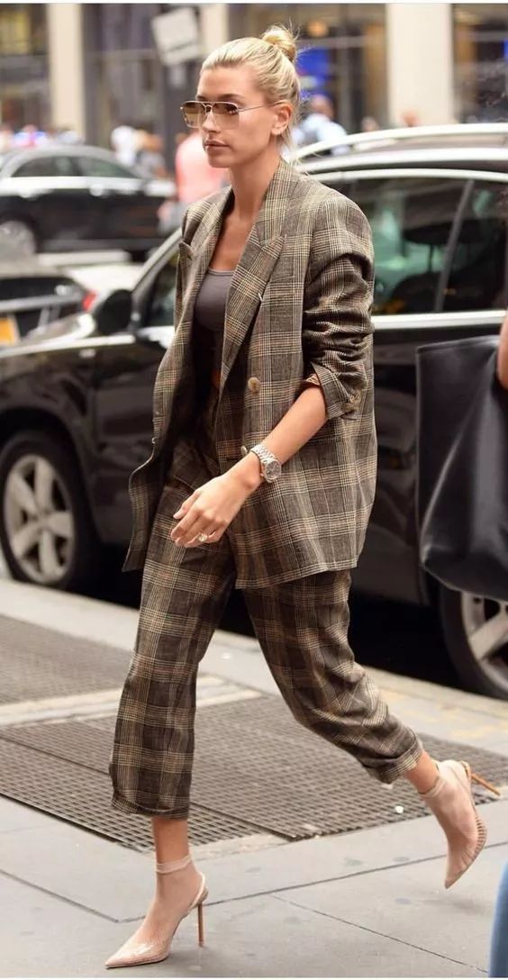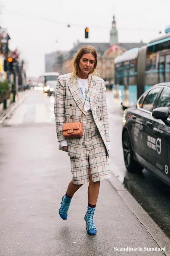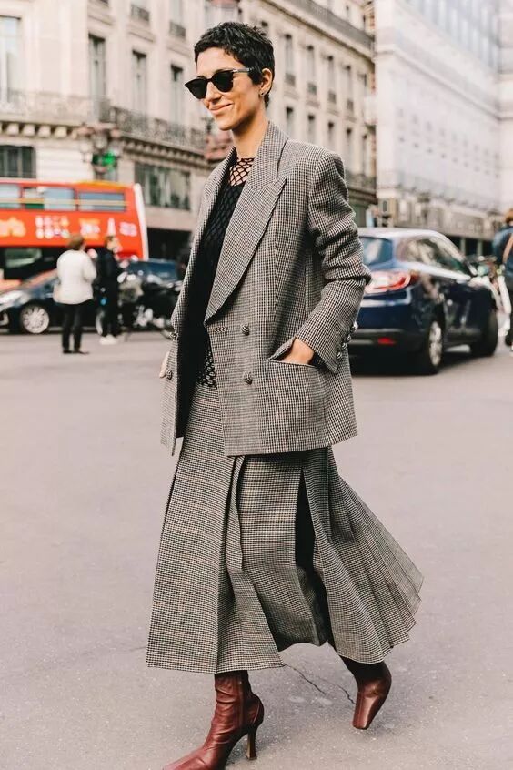 格纹成套穿,搭配一双高跟鞋,省时省事又方便。