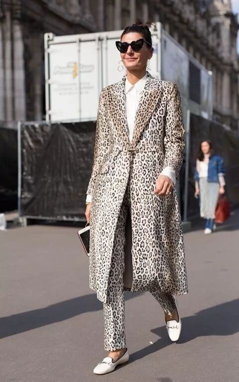 因为豹纹的花纹容易晃眼,所以最好搭配纯色的单品进行留白和过渡,看起来更得体大方。