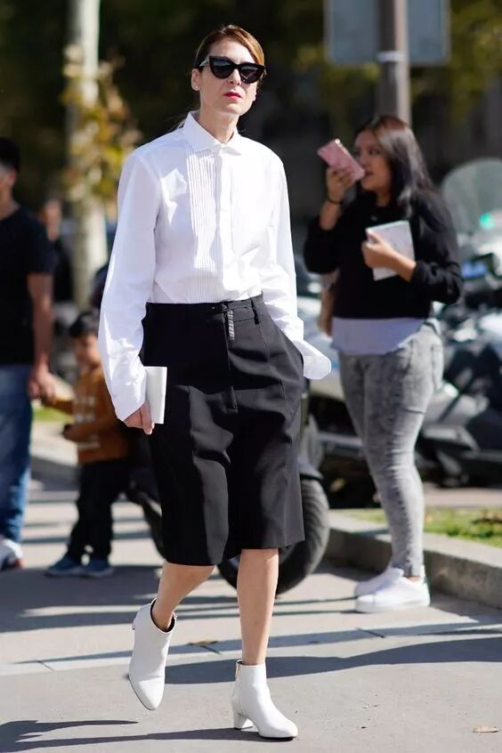 西装中裤很适合通勤,搭配一件白衬衫,有质感的同时又显品位。