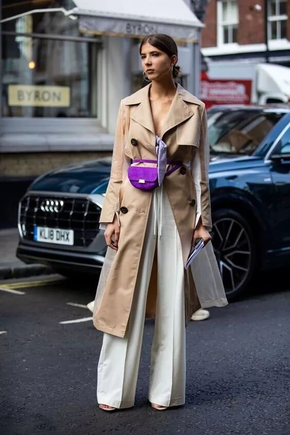 不仅可以提高腰线,亮色腰包还可以起到点亮全身的作用。