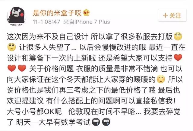 ▲王文也毫不在意地将和綦美合、李慧婷的群聊记录发微博上,把觊觎帅哥的普通女孩称为农民。这个聊天截图引发了很多普通女生的愤怒。綦美合虽然没发言但因为在群里,也受了牵连的影响。再加上视网民如“韭菜”,急不可耐要变现。就读设计专业的綦美合却抄袭大牌的“割韭菜”操作,让她的路人缘跌穿了地心。▲明明是学设计的,却偏要学网红山寨大牌,被网友质疑后,綦美合解释说是时间来不及,没法做自己的设计,在淘宝上卖盗版衣服的行为实在是败光粉丝好感。