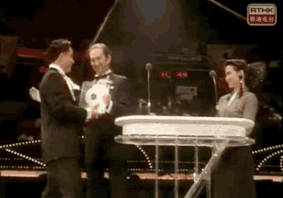 ▲赌王给张国荣颁奖,被媒体戏称“老丈人给女婿颁奖”。