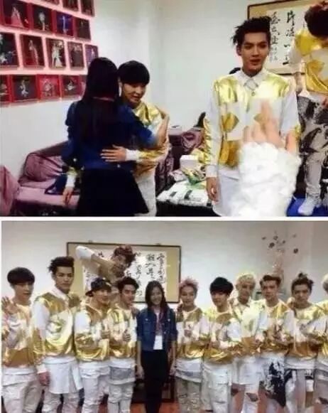 最早让綦美合登上饭圈舞台,是因为几张和当时归国的EXO合照。在她十三岁的时候,以VIP的身份在后台跟吴亦凡、鹿晗单独合照,还和张艺兴礼貌性拥抱。綦美合和普通的小女生一样开心地在微博上分享了合照。