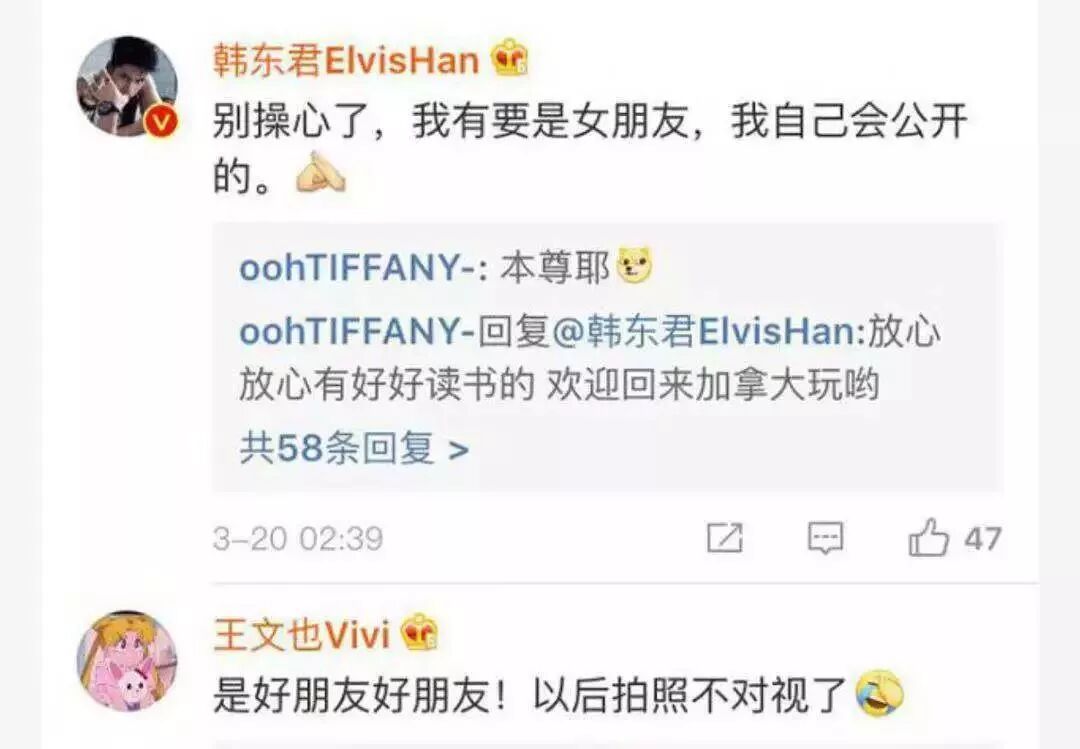 还没等新闻发酵,就看到韩东君在ins和微博双重辟谣,否认恋情。王文也则挽尊说是好朋友,以后不对视了。
