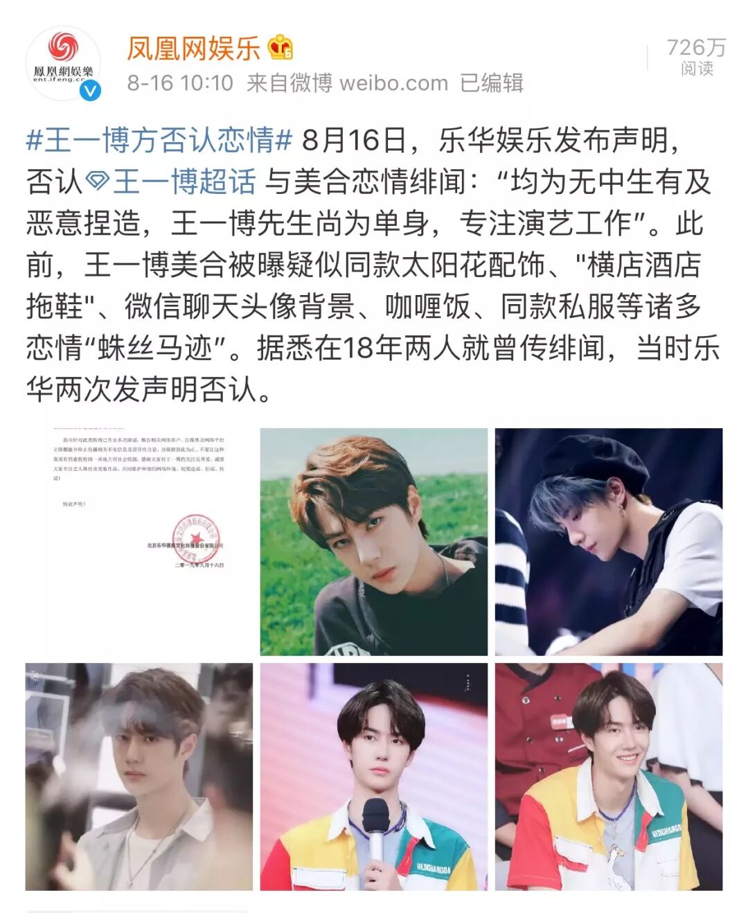 而乐华公司也是延续一贯的做法,为了这段绯闻第三次发声明否认。到底他们有没有谈恋爱,就由各位看官自行判断了。